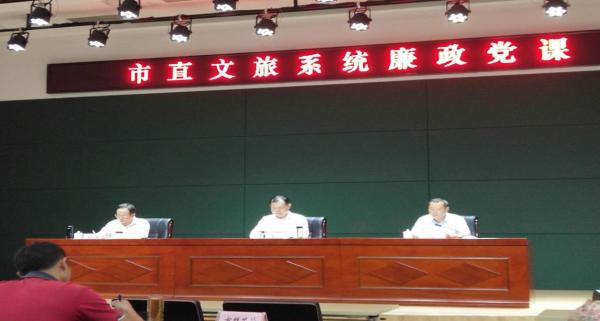 活動中,市文旅局黨組書記、局長李振主講了廉政黨課《加強(qiáng)黨風(fēng)廉政建設(shè) 為文旅工作保駕護(hù)航》,他從認(rèn)清政治形勢,嚴(yán)守政治紀(jì)律,充分認(rèn)識黨風(fēng)廉政建設(shè)重要性;堅決守住政治底線,做到廉潔奉公、執(zhí)政為民;完善懲防體系,深入推進(jìn)反腐倡廉重要工作;保持高壓態(tài)勢,努力打造風(fēng)清氣正的干部隊(duì)伍等四個方面進(jìn)行了講述。強(qiáng)調(diào)全體黨員要堅定理想信念,加強(qiáng)黨性修養(yǎng)永葆政治本色,不斷提高廉潔自律,拒腐防變能力。