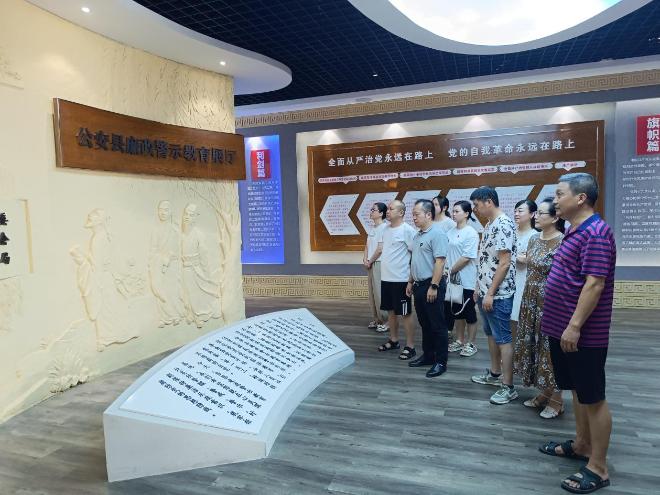 在解說(shuō)員的引導(dǎo)下,黨員干部們依次參觀了廉政警示教育展廳內(nèi)“旗幟篇、利劍篇、警示篇、懺悔篇、鑄魂篇、前行篇”六個(gè)主題篇章。大家邊聆聽(tīng)講解,邊觀圖品句,學(xué)習(xí)中央歷屆領(lǐng)導(dǎo)人對(duì)全面從嚴(yán)治黨的重要論述,了解近年公安縣紀(jì)委監(jiān)委查處的腐敗問(wèn)題典型案件。現(xiàn)場(chǎng)一幅幅生動(dòng)詳實(shí)的圖片、一樁樁落馬干部的警示案例,深刻剖析了部分黨員干部腐化墮落的思想根源和蛻變軌跡,以及對(duì)國(guó)家、社會(huì)、家庭帶來(lái)的惡劣影響,讓全體黨員干部對(duì)正風(fēng)肅紀(jì)反腐“永遠(yuǎn)在路上”有了更加直觀的感受,心靈受到了一次強(qiáng)烈的震撼和洗禮。