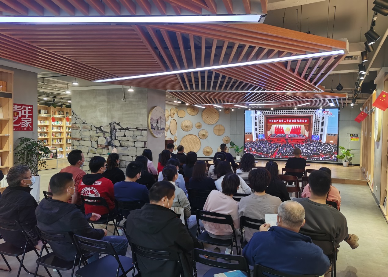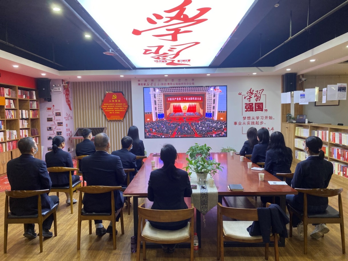 紅安縣分公司組織黨員干部員工和店內(nèi)讀者在紅安書(shū)城集中收看黨的二十大開(kāi)幕會(huì)