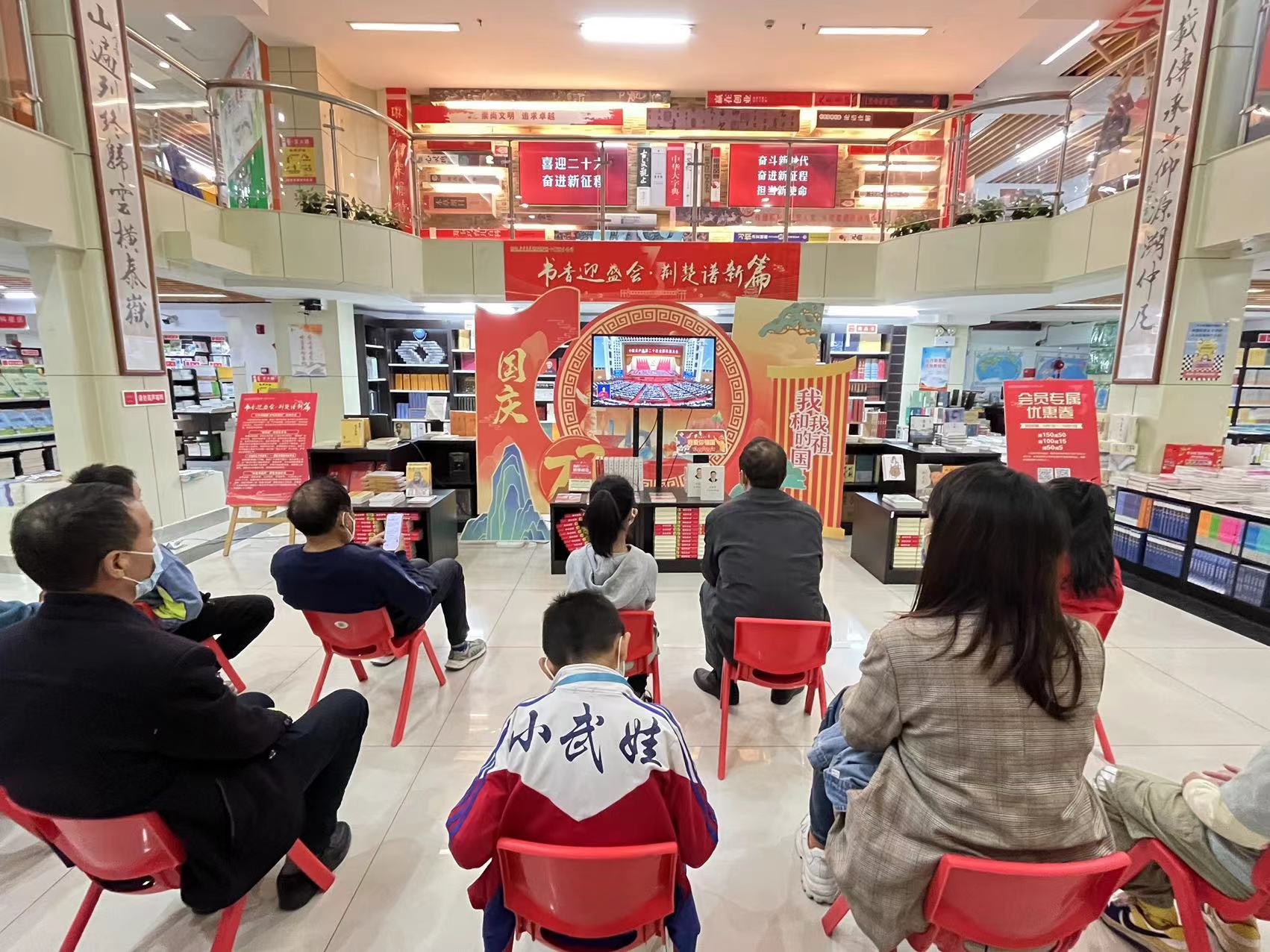 此外,全省各地新華書(shū)店紛紛在連鎖門(mén)店播放大會(huì)實(shí)況,方便黨員干部和讀者群眾及時(shí)收看黨的二十大開(kāi)幕式盛況。