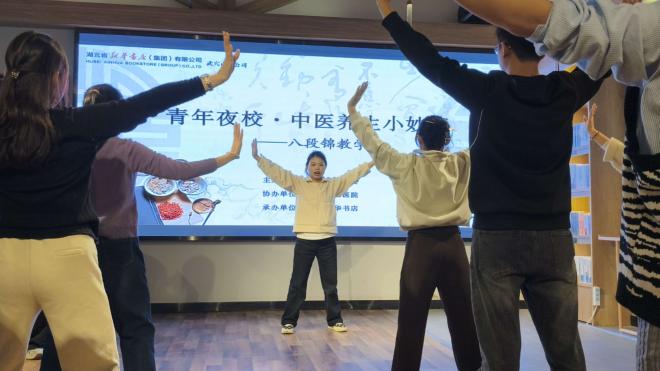 11月20日晚,武穴市分公司連鎖店聯(lián)合團(tuán)市委、市中醫(yī)醫(yī)院舉辦“青年夜校——八段錦教學(xué)課”活動(dòng),吸引眾多讀者參加。