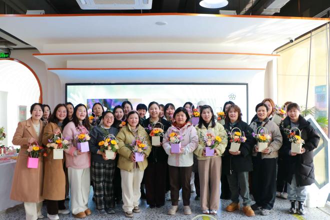 活動現(xiàn)場,各部門女員工代表齊聚一堂。青少年宮店的工作人員進行了詳細的插花工藝講解,從花材特點到制作步驟,為大家的創(chuàng)作筑牢基礎。隨后,女員工們開啟了 1 小時的創(chuàng)作之旅。大家精心修剪花枝,發(fā)揮創(chuàng)意進行色彩搭配?,F(xiàn)場氣氛熱烈,大家交流創(chuàng)意,分享構思。普普通通的花材在她們手中變成了風格各異的插花作品,或明艷動人,或清新雅致,充分展現(xiàn)了女員工們的藝術天賦與對美的獨特理解。創(chuàng)作完成后,大家積極分享插花心得,講述靈感來源,在交流中相互學習?;顒幼詈?,全體人員手持作品合影留念,笑容滿面。