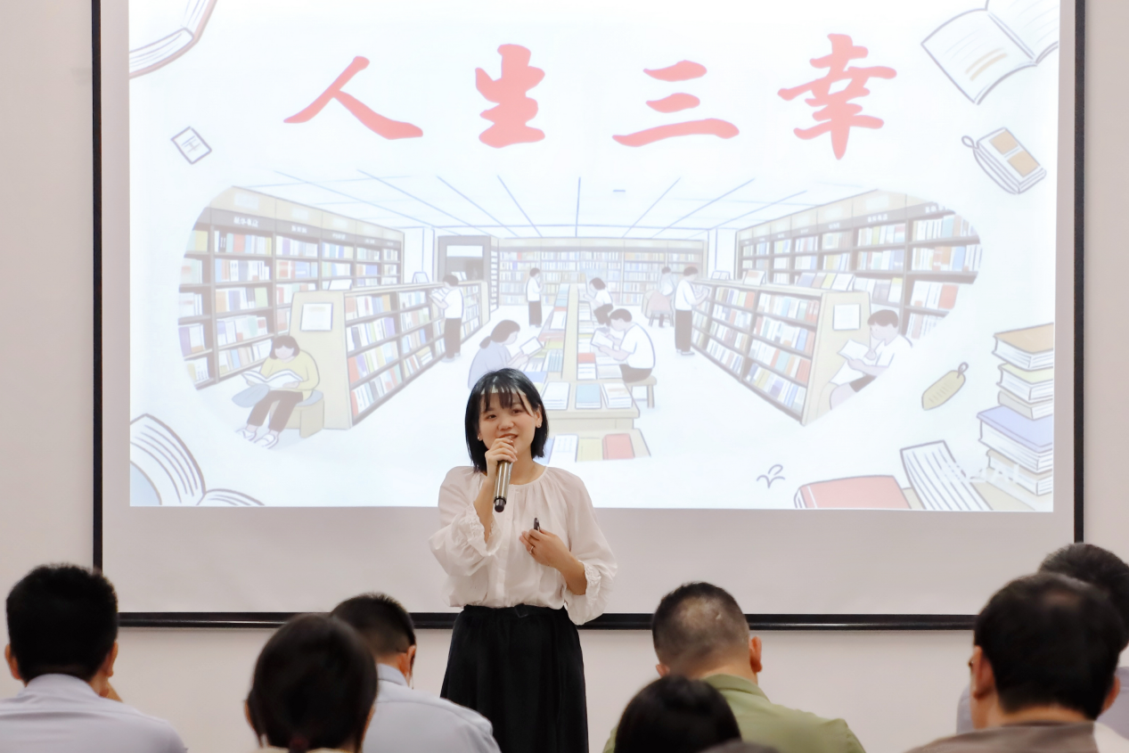 而在所有關(guān)于“拼搏”的記憶里,最令人動(dòng)容的是2022年那一幕。她在集團(tuán)“我與新華共成長”演講比賽前夕意外受傷,腿部進(jìn)行了手術(shù)。面對身體的不便和參賽的巨大困難,她沒有絲毫退縮。因前期付出了大量心血準(zhǔn)備,她毅然決定:拄著拐杖也要去!比賽當(dāng)天,在同事們的攙扶下,她一步步堅(jiān)定地走上集團(tuán)賽場的講臺(tái)。當(dāng)她飽含深情地訴說自己對新華書店事業(yè)的熱愛與堅(jiān)守時(shí),臺(tái)下掌聲雷動(dòng)。那掌聲,不僅是對她演講內(nèi)容的肯定,更是對她堅(jiān)韌不拔意志的認(rèn)可。