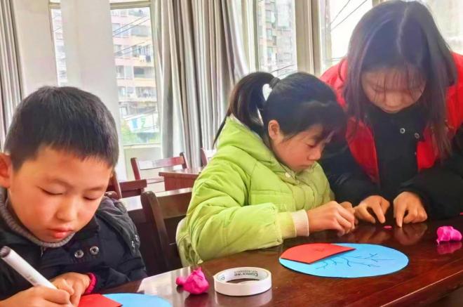 現(xiàn)場(chǎng)分公司青年員工和社區(qū)大學(xué)生志愿者帶領(lǐng)孩子們開(kāi)展了“慧悅讀”活動(dòng)。在“新春發(fā)財(cái)樹(shù)”超輕黏土裝飾畫(huà)手工制作環(huán)節(jié),分公司員工對(duì)裝飾畫(huà)的制作過(guò)程進(jìn)行了生動(dòng)有趣的講解和示范操作,在培養(yǎng)孩子們動(dòng)手能力的同時(shí)闡釋了春節(jié)為代表的傳統(tǒng)節(jié)日文化內(nèi)涵。歌曲合唱環(huán)節(jié),分公司員工通過(guò)對(duì)革命歌曲《我們是共產(chǎn)主義的接班人》創(chuàng)作背景的介紹,加深孩子們對(duì)旋律的把握和對(duì)歌詞的理解,厚植孩子們 “愛(ài)祖國(guó) 愛(ài)人民”的家國(guó)情懷,氛圍熱烈。