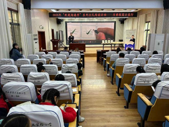 4月10日,由通城縣分公司主辦、縣教研室協(xié)辦的2024年“荊楚閱讀季—書香校園公益行”活動(dòng)來到通城縣雋水小學(xué)、縣實(shí)驗(yàn)學(xué)校舉行。活動(dòng)邀請(qǐng)書法家張鵬濤老師為同學(xué)們作書法專題講座,縣委宣傳部、縣教研室、分公司相關(guān)負(fù)責(zé)人及兩所學(xué)校共計(jì)700余名師生參加活動(dòng)。