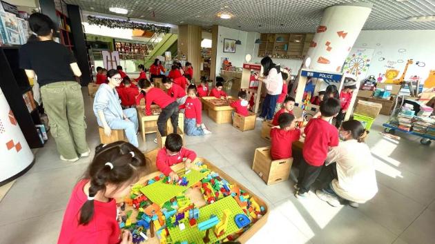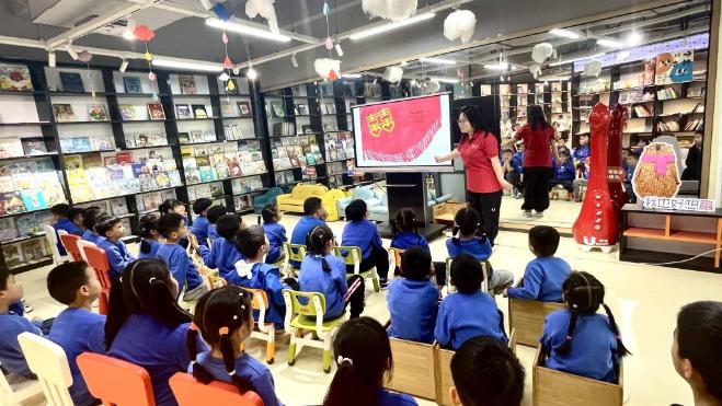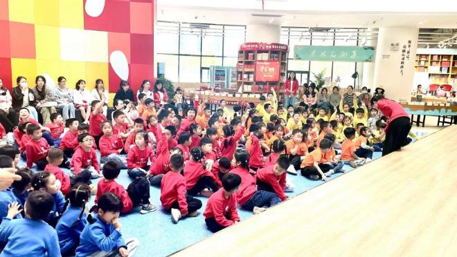 隨后,孩子們?cè)谌龢抢L本館通過“看、讀、演”的模式開啟了一場(chǎng)閱讀之旅。大家圍坐在一起,認(rèn)真聆聽書城工作人員講述的繪本故事,并在工作人員的帶領(lǐng)下,從書架中挑選自己喜歡的圖書開始閱讀。有的孩子看得全神貫注,有的孩子邊翻書邊講述,有的孩子則圍坐在一起共讀一本繪本,共同沉浸在書的海洋里,感受讀書帶來的快樂。