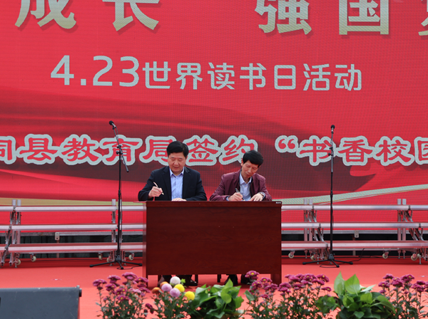本網(wǎng)訊(通訊員何俊、責(zé)任編輯葉珂)4月22日,蘄春縣“4.23”世界讀書日“書香助力成長(zhǎng) 強(qiáng)國(guó)復(fù)興有我”主題讀書活動(dòng)暨共建“書香校園示范區(qū)”啟動(dòng)儀式在縣實(shí)驗(yàn)中學(xué)舉行。新華書店集團(tuán)副總經(jīng)理周怡,蘄春市委宣傳部副部長(zhǎng)吳敬秋、版權(quán)科副科長(zhǎng)李思銳,縣委常委、統(tǒng)戰(zhàn)部部長(zhǎng)程桂君,縣政府副縣長(zhǎng)譚皓,縣委宣傳部副部長(zhǎng)余立鵬,縣教育局副書記李泓及新華書店蘄春縣分公司經(jīng)理王新友等出席活動(dòng),縣全閱辦各成員單位負(fù)責(zé)同志及縣實(shí)驗(yàn)中學(xué)全體師生參加活動(dòng)。