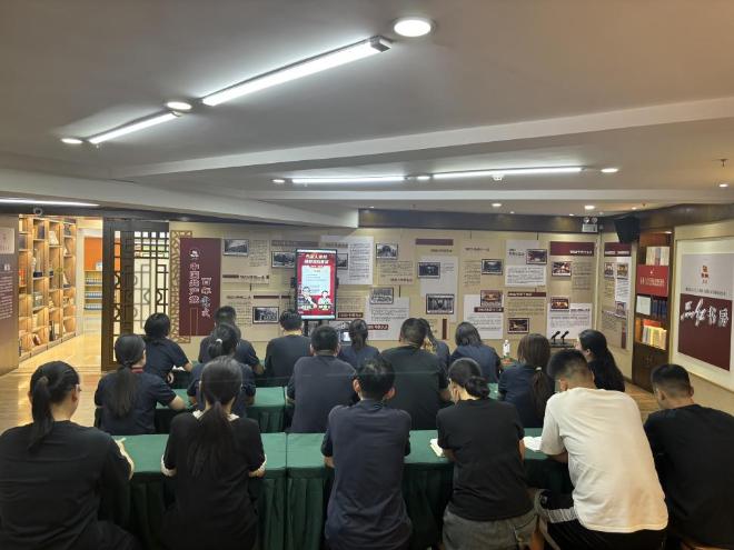 7月24日晚,十堰市分公司人民路連鎖店組織全體員工集中學(xué)習(xí)收看書業(yè)營銷專家路毅老師“開學(xué)季市場預(yù)判與實戰(zhàn)策略”專場直播,為沖刺開學(xué)季銷售打基礎(chǔ)。