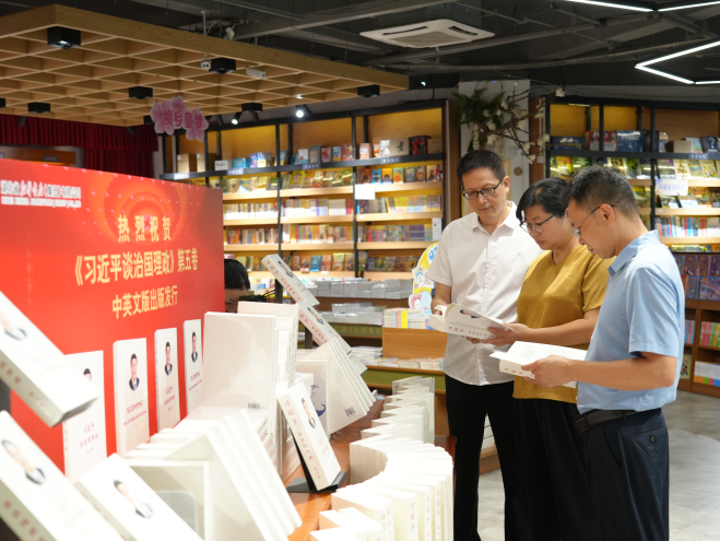 8月4日,仙桃市委宣傳部副部長江進波一行來到仙桃市分公司,專題調(diào)研指導《習近平談治國理政》第五卷的發(fā)行宣傳和服務保障工作。仙桃電視臺對仙桃書城主題展臺及特色服務進行了專題報道。