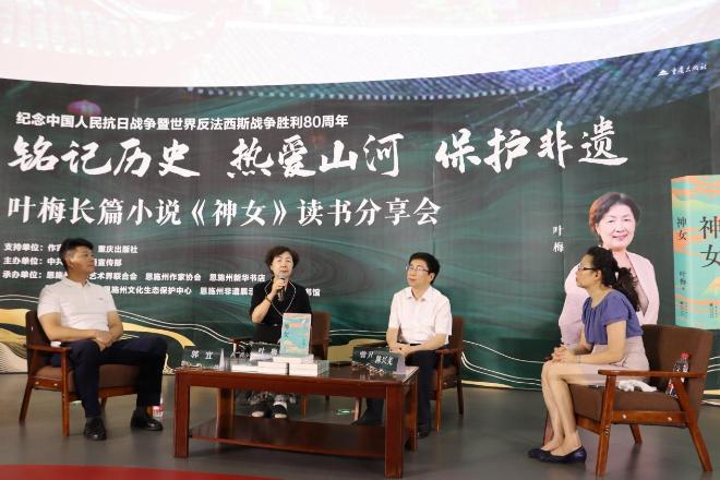 本次分享會聚焦中國散文學會會長、著名作家葉梅女士的最新力作《神女》。小說以深厚的長江文化、三峽文化為底蘊,生動描繪了抗戰(zhàn)時期恩施及周邊地區(qū)川江船工與三峽人民英勇不屈、共赴國難的壯烈史詩,是紀念抗戰(zhàn)勝利80周年的一部重要文學作品。分享會得到了作家出版社和重慶出版集團的大力支持。