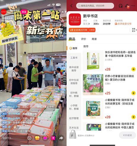 線上,多維發(fā)力,依托新媒體平臺持續(xù)推送開學季專屬福利與互動內(nèi)容,深度觸達本地家長群體,累計覆蓋超5萬余人次;創(chuàng)新采用“知名達人探店+店員直播接力”組合模式,雙重助力團購券銷售,直播場均銷售取得突破;同步上線“美團閃送”即時購書服務,上線僅一周訂單量激增,成為線上銷售新的增長點。線下,場景賦能,從場景營造、商品陳列、優(yōu)惠聯(lián)動三方面入手,打造沉浸式線下消費場景,全方位滿足學生多元消費需求。兩天時間,線下線上銷售同比增長31.8%。