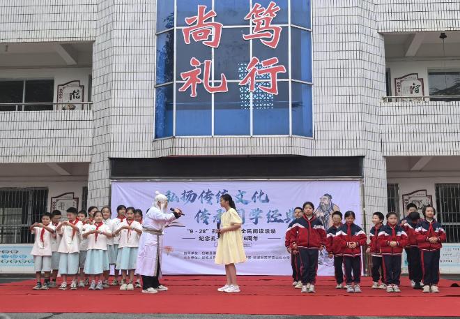 活動在茨河鎮(zhèn)中心學(xué)校領(lǐng)導(dǎo)熱情洋溢的致辭中拉開帷幕。隨后,現(xiàn)場舉行了莊重而富有儀式感的“行拜師禮”環(huán)節(jié),學(xué)生們通過傳統(tǒng)禮儀,深刻感悟尊師重道的中華美德。在經(jīng)典的誦讀聲中,全體參與者齊聲誦讀《論語》精選篇章,瑯瑯書音回蕩在校園,先賢的智慧跨越時空浸潤心田。緊接著,手勢舞《孔夫子的話》以新穎活潑的形式演繹了國學(xué)精髓,而情景劇《和孔子的對話》則通過古今對話的創(chuàng)意編排,生動展現(xiàn)了孔子思想的時代價值,將現(xiàn)場氣氛推向高潮?;顒幼詈?,分公司及相關(guān)單位為積極參與活動的學(xué)生們頒發(fā)獎品,鼓勵同學(xué)們持續(xù)閱讀,傳承經(jīng)典。