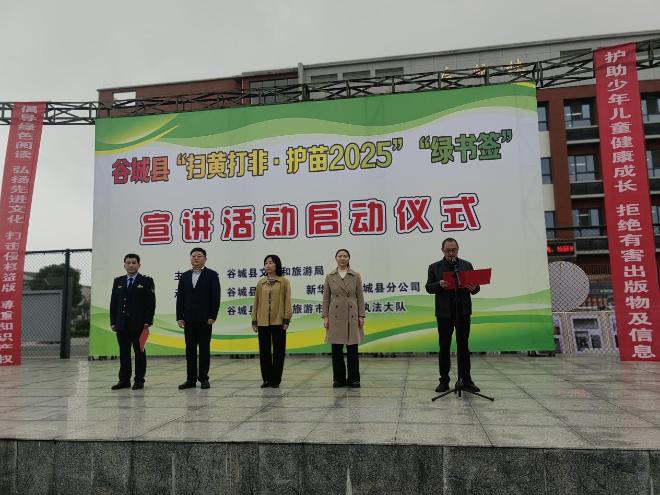 10月16日,由谷城縣文化和旅游局主辦,縣教育局、新華書店谷城縣分公司共同承辦的2025年“掃黃打非·護(hù)苗2025”“綠書簽”宣傳活動(dòng)啟動(dòng)儀式在縣第二實(shí)驗(yàn)小學(xué)順利舉行??h文旅局、縣教育局、分公司等相關(guān)單位負(fù)責(zé)人,以及縣第二實(shí)驗(yàn)小學(xué)800余名師生參加了本次活動(dòng)。