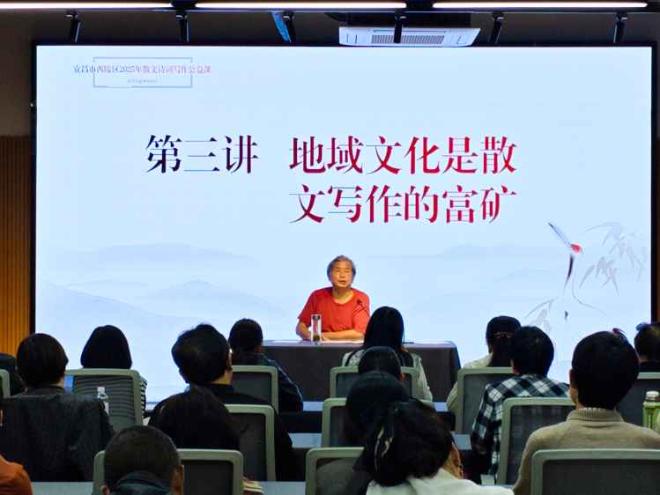 講座現(xiàn)場,韓永強緊扣“地域文化與散文寫作”核心命題,以宜昌本土文化為鮮活范本,鮮明指出“地域文化正是散文創(chuàng)作的源頭活水”。他將抽象理論與實戰(zhàn)經(jīng)驗巧妙融合,讓干貨內(nèi)容通俗易懂。結(jié)合自身發(fā)表于《人民日報》的散文佳作講解創(chuàng)作思路,生動詮釋如何將地域文化內(nèi)核與個人情感深度綁定,讓文字既滿溢“宜昌味”,又傳遞“人情味”,引發(fā)在場聽眾強烈共鳴,文學(xué)氛圍濃厚。