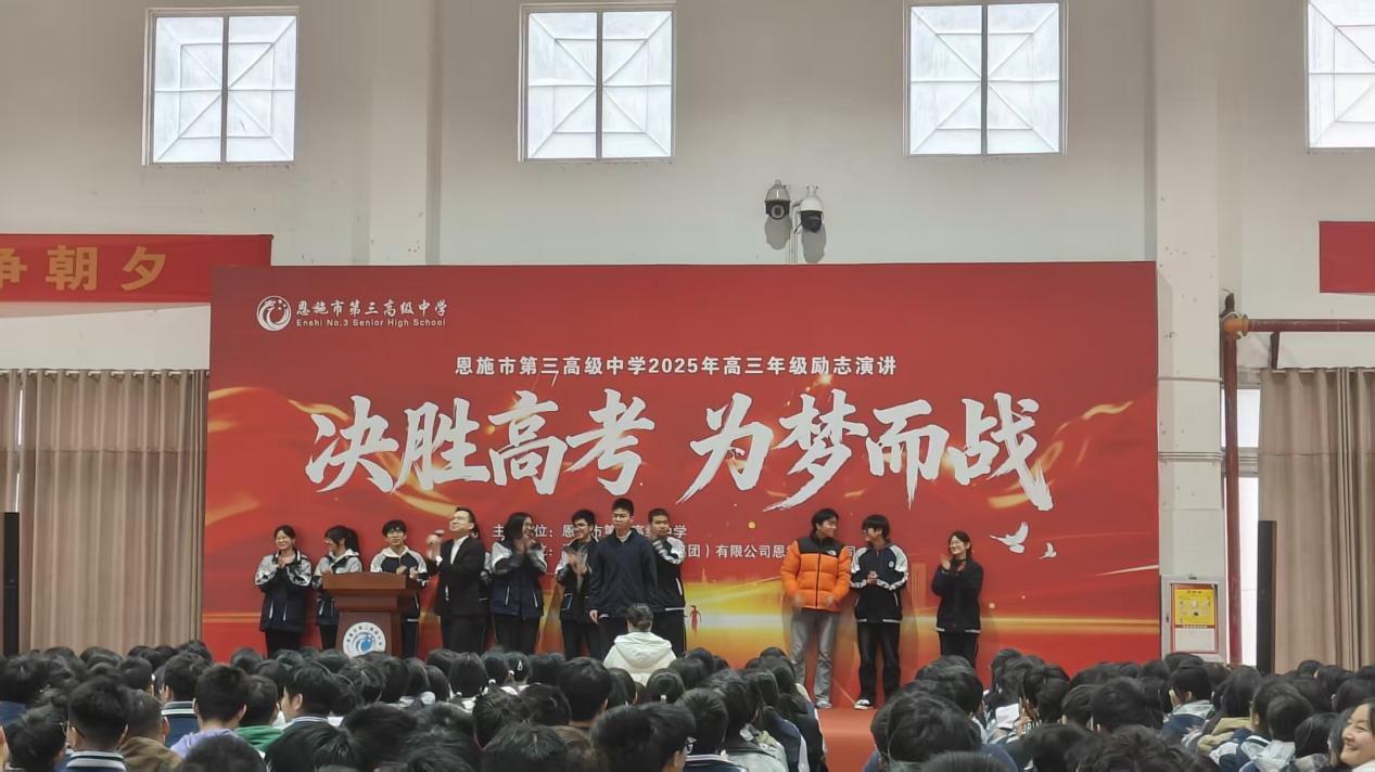 同日,在恩施芳華中學(xué)和第三高級(jí)中學(xué),兩場(chǎng)主題鮮明的勵(lì)志演講活動(dòng)同步開(kāi)展,為初、高三學(xué)子送上精神養(yǎng)分。在恩施芳華中學(xué),“相信奇跡 無(wú)翼飛翔”主題活動(dòng)用生動(dòng)案例詮釋堅(jiān)持夢(mèng)想、努力奮斗的深刻內(nèi)涵,學(xué)子們?cè)诔两今雎?tīng)中點(diǎn)燃逐夢(mèng)熱情,與演講老師互動(dòng)熱烈。在恩施第三高級(jí)中學(xué),“決勝高考 為夢(mèng)而戰(zhàn)”活動(dòng)緊扣高考備考關(guān)鍵節(jié)點(diǎn),為學(xué)子們舒緩壓力、激發(fā)動(dòng)力,助力他們以昂揚(yáng)姿態(tài)迎接挑戰(zhàn)。兩場(chǎng)演講活動(dòng),分公司充分發(fā)揮文化陣地作用,用勵(lì)志正能量為備考學(xué)子保駕護(hù)航。