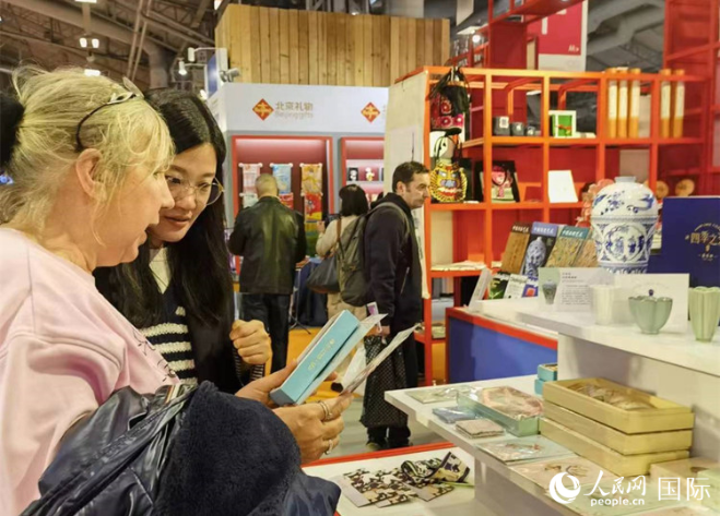 巴黎市民在“倍悅文創(chuàng)”展臺(tái)前。人民網(wǎng)記者 于超凡攝