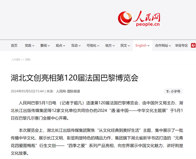 人民網(wǎng)∣湖北文創(chuàng)亮相第120屆法國(guó)巴黎博覽會(huì)