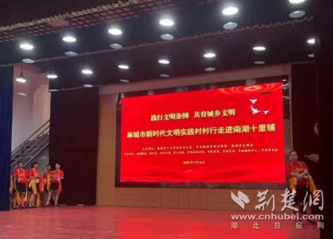 書香潤鄉(xiāng)土,愛心滿麻城。7月16日,由麻城市委宣傳部、市公安局、市教育局、市民政局及新華書店麻城市分公司聯(lián)合舉辦的“踐行文明條例 共育城鄉(xiāng)文明——麻城市2024年新時代鄉(xiāng)村閱讀季”主題活動在南湖辦事處十里鋪村村部舉行。