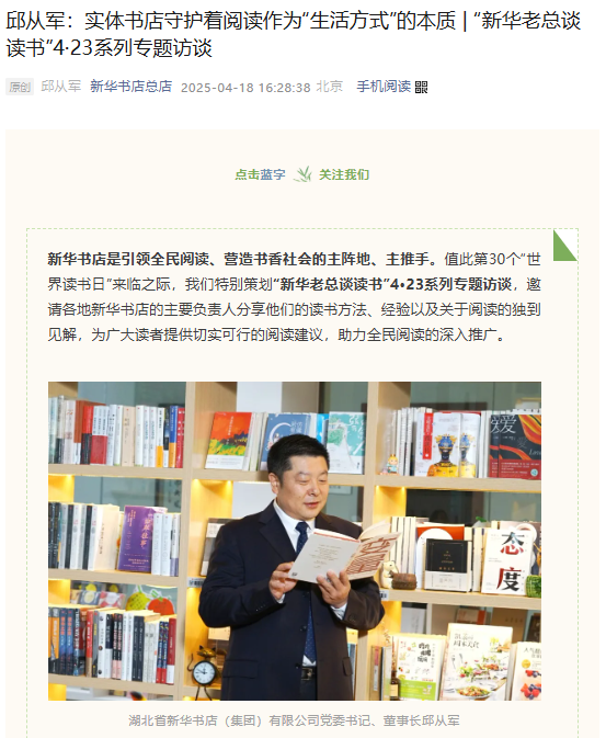 新華書店總店 | 邱從軍:實(shí)體書店守護(hù)著閱讀作為“生活方式”的本質(zhì)
