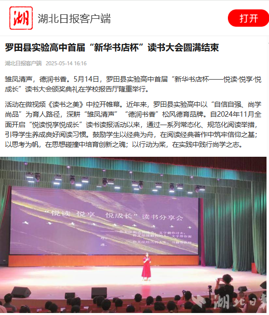 湖北日?qǐng)?bào)客戶端 | 羅田縣實(shí)驗(yàn)高中首屆“新華書店杯”讀書大會(huì)圓滿結(jié)束
