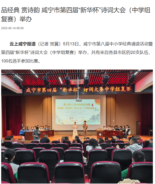 云上咸寧 | 品經(jīng)典 賞詩韻 咸寧市第四屆“新華杯”詩詞大會(huì)(中學(xué)組復(fù)賽)舉辦