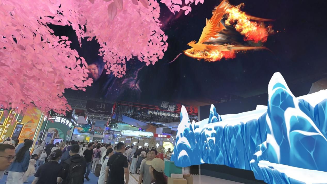 在科技文化展區(qū),實現(xiàn)大空間自由交互的MR項目《黑暗創(chuàng)世紀(jì)》在400平米空間內(nèi)構(gòu)建出可自由探索的“創(chuàng)世紀(jì)”史詩場景,首次為參展游客帶來前所未有的“身臨其境”文化體驗。