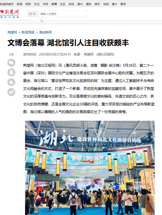 荊楚網(wǎng) | 文博會落幕 湖北館引人注目收獲頗豐