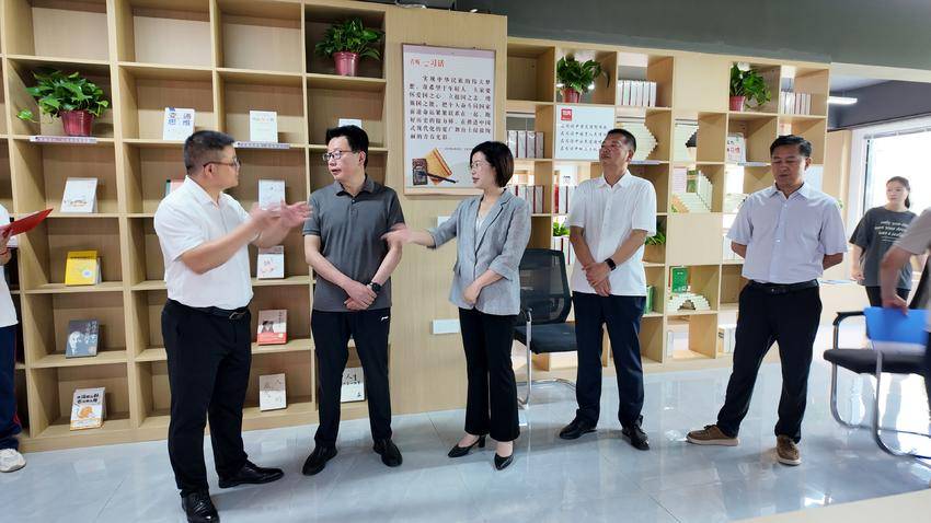 揭牌儀式結(jié)束后,參會人員一同參觀校園書店。在工作人員的引導(dǎo)下,大家實(shí)地體驗全新的閱讀空間,仔細(xì)聽取書店主題分區(qū)、功能布局及特色服務(wù)的介紹。