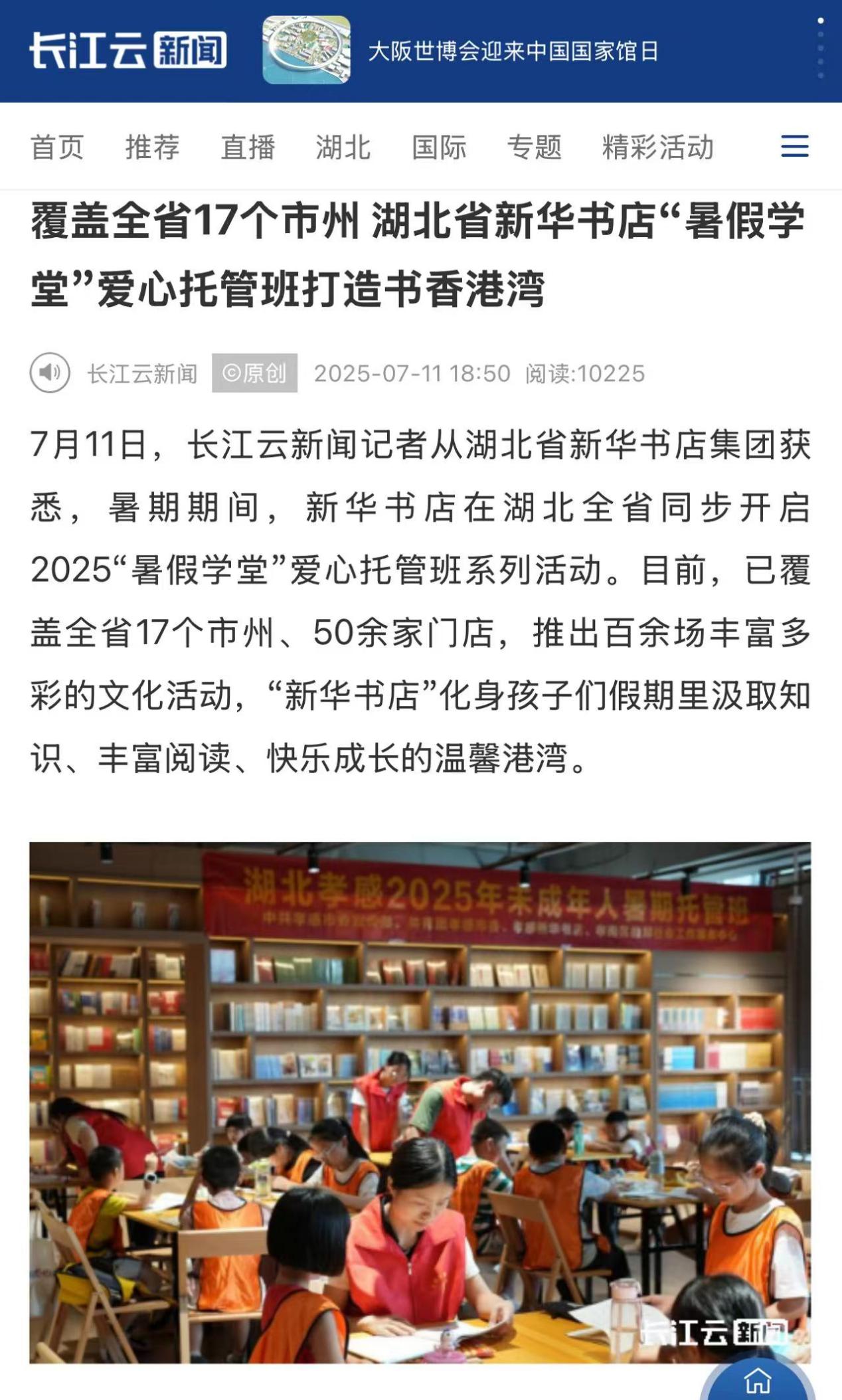 長江云新聞 | 覆蓋全省17個市州 湖北省新華書店“暑假學堂”愛心托管班打造書香港灣