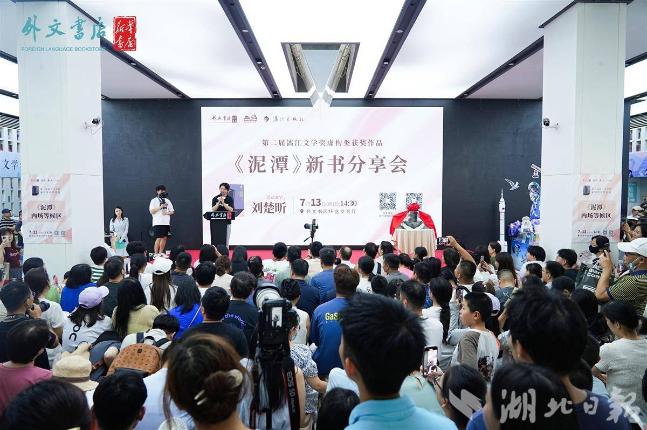 “我每次面對這么多讀者,心里都非常忐忑。”7月13日,第二屆漓江文學(xué)獎(jiǎng)虛構(gòu)類獲獎(jiǎng)作品《泥潭》新書分享會在湖北省外文書店舉行,現(xiàn)場人頭攢動。因在獲獎(jiǎng)感言中深情懷念去世女友而爆火網(wǎng)絡(luò)的湖北省社科院助理研究員、青年作家劉楚昕說,網(wǎng)友和讀者們的轉(zhuǎn)發(fā)與點(diǎn)贊,把他捧到了一個(gè)不屬于自己的高度。每次為讀者簽名,他都很緊張,也不斷安慰自己——就當(dāng)成是為中國文學(xué)發(fā)展和全民閱讀做一點(diǎn)貢獻(xiàn)。