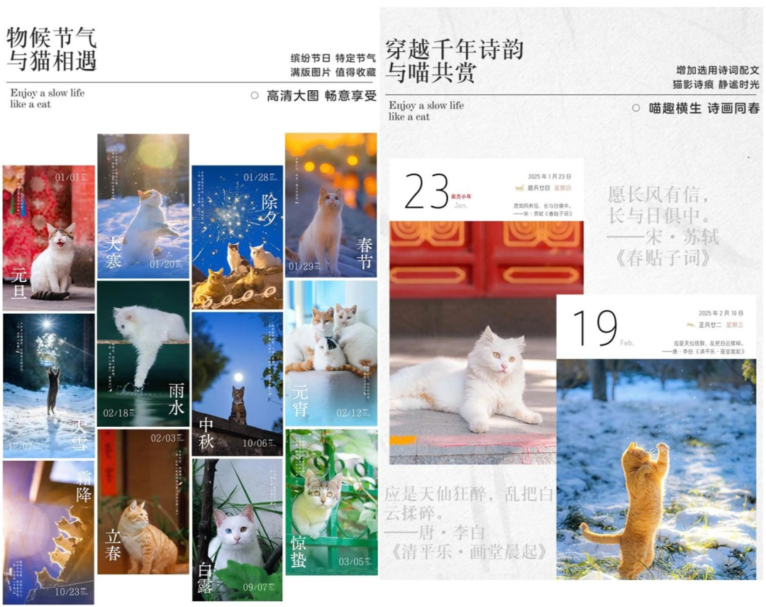 以“出版+文創(chuàng)”模式,依托本版資源打造推出現(xiàn)象級單品《遇見貓——溫暖治愈指南》日歷,連續(xù)三年研發(fā)出版。每年每本收錄365張不重樣的流浪貓攝影作品,搭配暖心文案,將貓咪的可愛形象和溫暖治愈的情感傳遞給讀者。2026年將推出日歷周邊文創(chuàng)、日歷套盒,如貓咪玩偶、貓咪鑰匙鏈等,將“遇見貓”從單一產(chǎn)品升級為情感IP,進(jìn)一步豐富產(chǎn)品的文化內(nèi)涵和商業(yè)價(jià)值。
