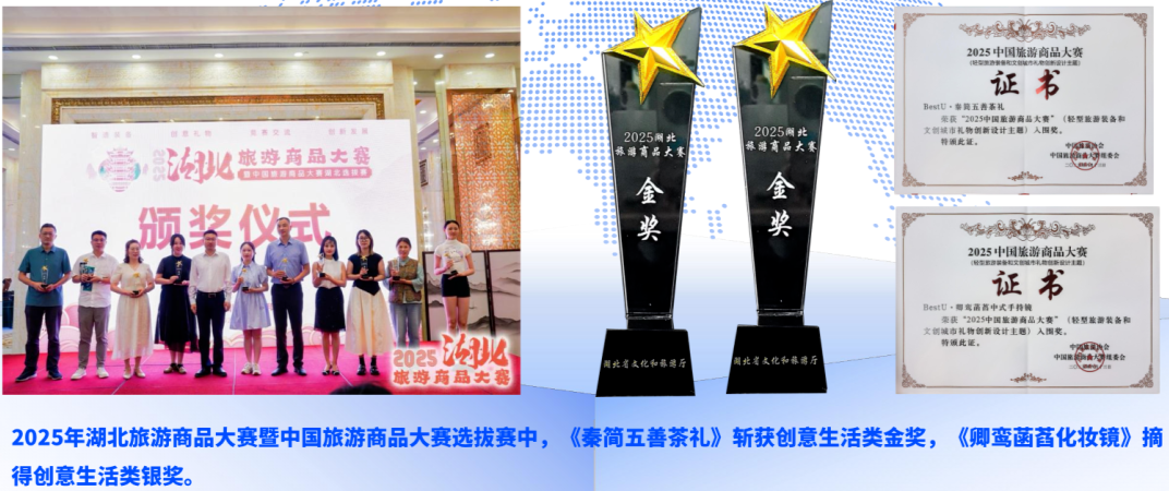 同時(shí),“睡虎地秦簡五善茶禮”“卿鸞菡萏化妝鏡”等博物館文創(chuàng)產(chǎn)品,在2025年湖北旅游商品大賽中分別獲創(chuàng)意生活類金獎(jiǎng)、銀獎(jiǎng),“卿鸞菡萏化妝鏡”入圍中國旅游商品大賽決賽。