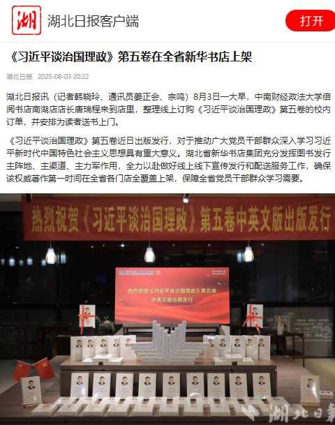湖北日報客戶端 |《習(xí)近平談治國理政》第五卷在全省新華書店上架