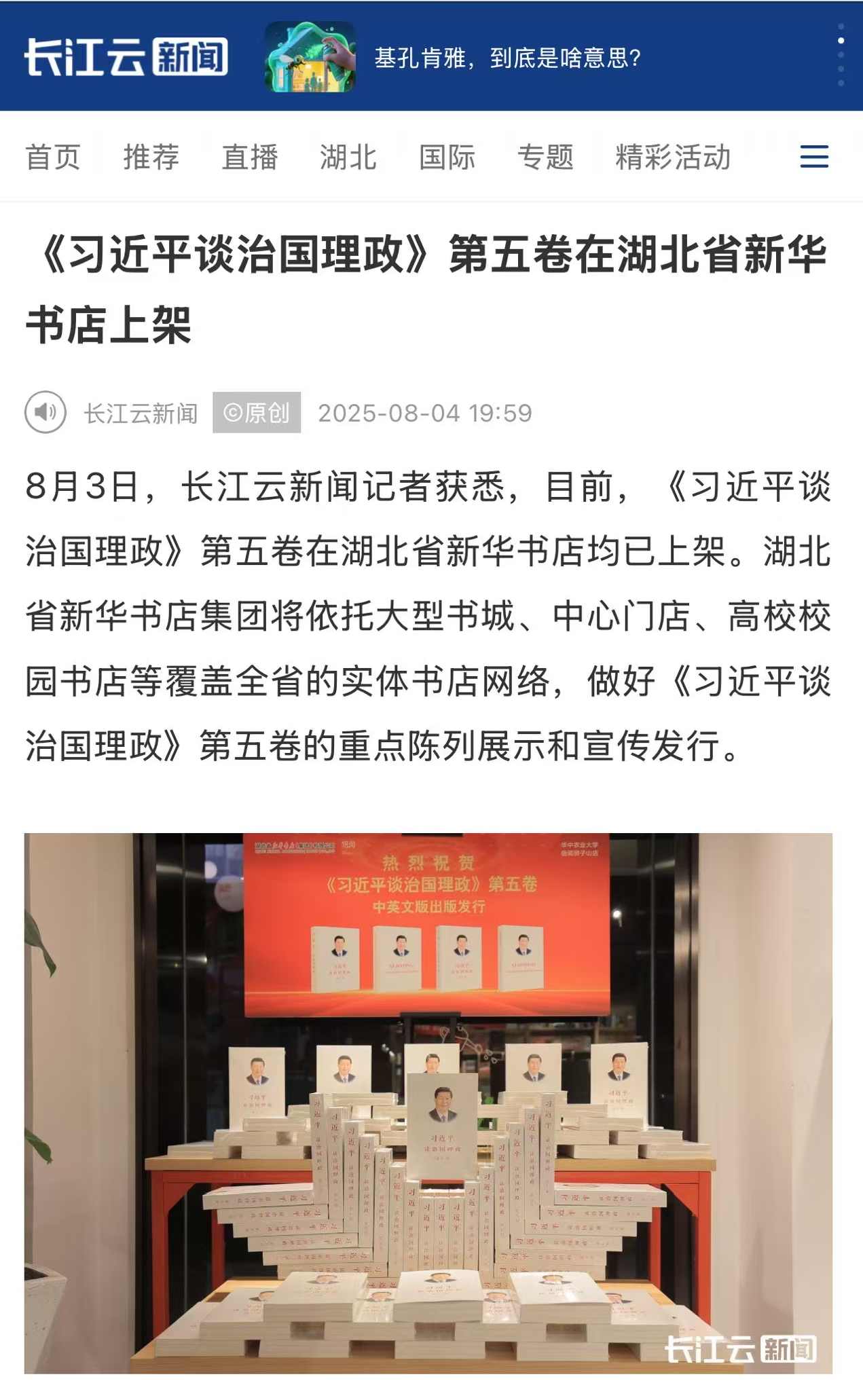 長江云新聞|《習(xí)近平談治國理政》第五卷在湖北省新華書店上架