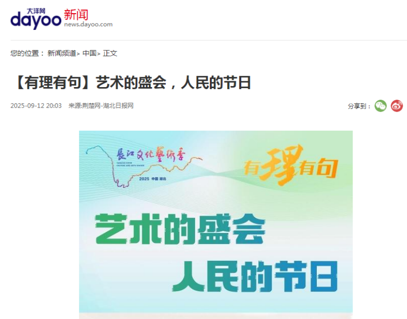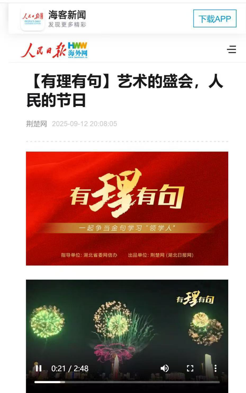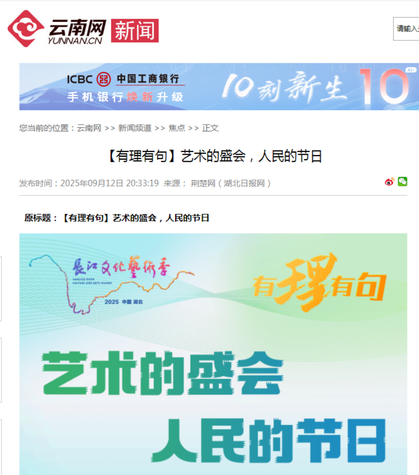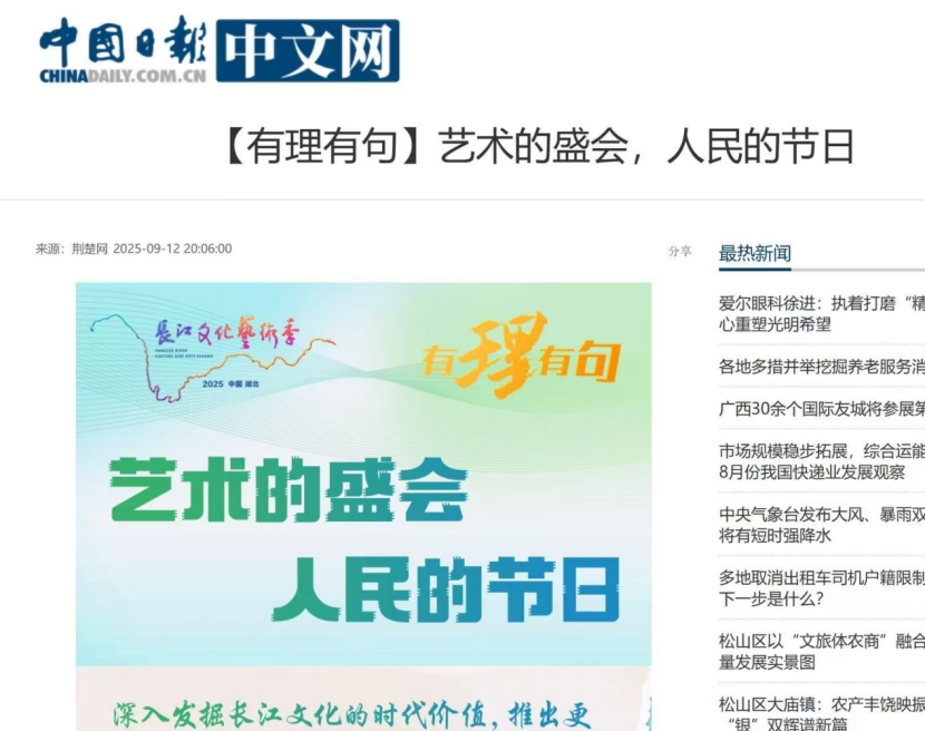 9月12日晚,2025長江文化藝術(shù)季盛大啟幕。由湖北省委網(wǎng)信辦指導(dǎo),湖北省新華書店(集團)有限公司、荊楚網(wǎng)(湖北日報網(wǎng))特別策劃“書香長江”閱讀周預(yù)熱視頻《【有理有句】藝術(shù)的盛會,人民的節(jié)日》,著名歷史學(xué)者紀連海邀約廣大市民讀長江、讀歷史、讀中國,成為當(dāng)晚的熱點話題。