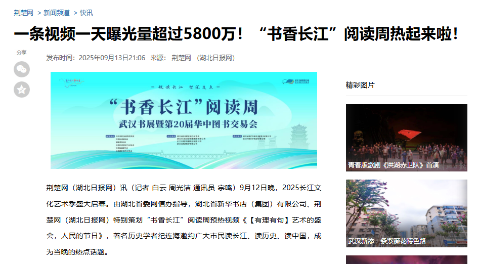 荊楚網(wǎng) | 一條視頻一天曝光量超過5800萬!“書香長江”閱讀周熱起來啦!