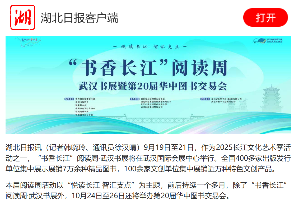 湖北日報(bào)客戶端 | “書香長江”閱讀周·武漢書展9月19日啟幕 集中展示展銷7萬余種精品圖書