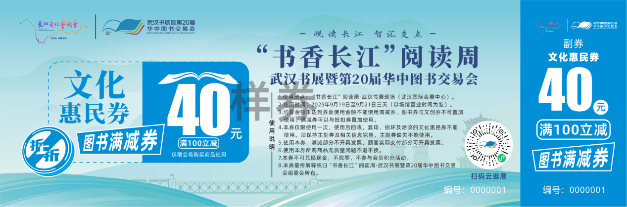 展會積極響應國家關(guān)于促進文化消費、推動全民閱讀的號召,繼續(xù)堅持“藝術(shù)的盛會,人民的節(jié)日”的辦展宗旨,按照“展銷結(jié)合,以銷為主,文化惠民”的辦展思路,將在湖北省新華書店和武漢市新華書店旗下400多家實體門店和線上網(wǎng)店同步舉辦“書香長江”惠民購書月系列文化惠民活動。