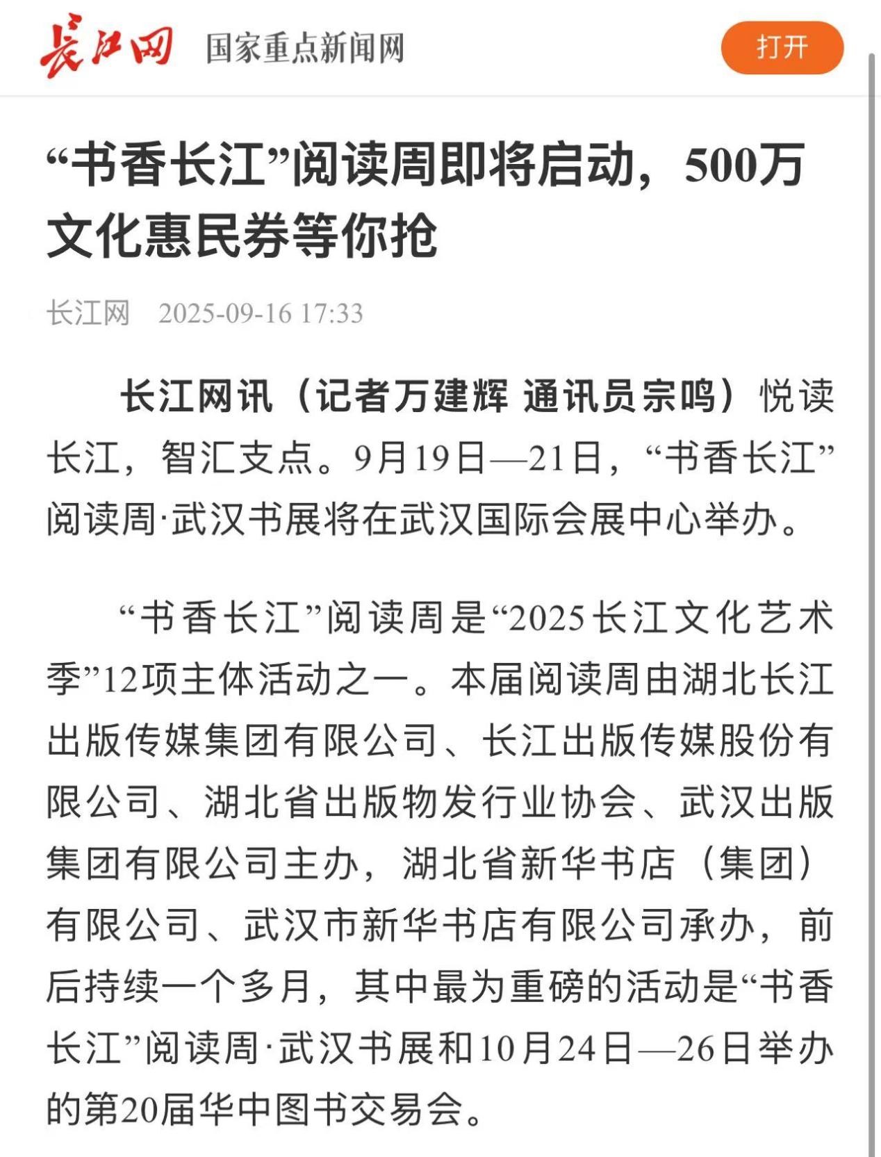 長江網(wǎng) |“書香長江”閱讀周即將啟動,500萬文化惠民券等你搶