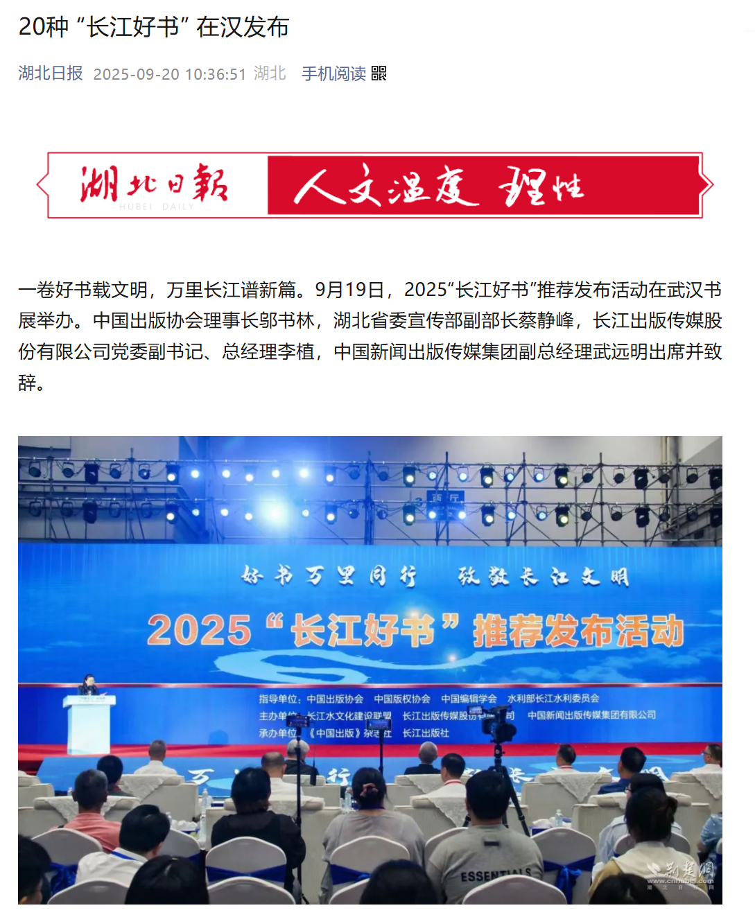 湖北日?qǐng)?bào) | 20種 “長(zhǎng)江好書(shū)” 在漢發(fā)布