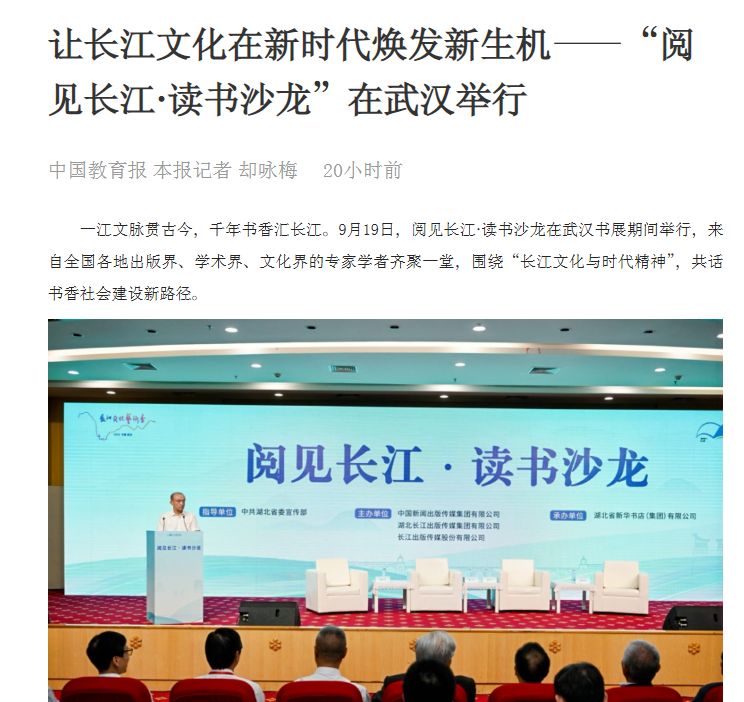 中國教育報(bào) | 讓長江文化在新時代煥發(fā)新生機(jī)——“閱見長江·讀書沙龍”在武漢舉行