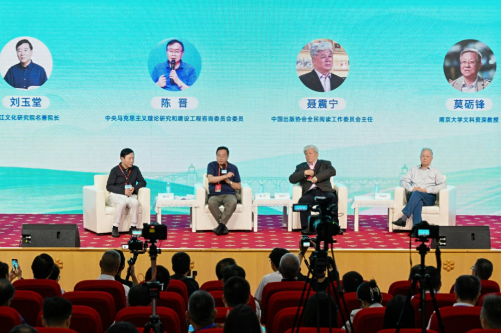 活動中,兩場別開生面的文化沙龍同時舉辦。第一場讀書沙龍中,中央馬克思主義理論研究和建設(shè)工程咨詢委員會委員陳晉、中國出版協(xié)會全民閱讀工作委員會主任聶震寧和南京大學(xué)文科資深教授莫礪鋒、長江文化研究院名譽(yù)院長劉玉堂四位專家學(xué)者,圍繞“長江文化與時代精神”展開深入探討。嘉賓們從文獻(xiàn)典籍中的長江記憶談到創(chuàng)新傳播中的文化活化,從歷史底蘊(yùn)的發(fā)掘到當(dāng)代價值的轉(zhuǎn)化,全面展現(xiàn)了長江文化如江水般綿長深厚的生命力。