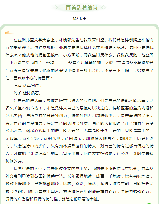 4.2國(guó)際兒童圖書日丨韋葦傾情推薦——《世界童詩(shī)100首》