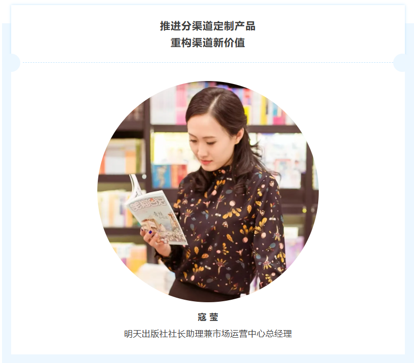 Q 從2024年渠道情況推演今年的渠道策略和打法,有哪些方向以及相關(guān)配套政策落地?2025年,二十一世紀(jì)社的渠道策略就是“多管齊下”,把每個(gè)營(yíng)銷(xiāo)編輯和發(fā)行員培養(yǎng)成“多面手”。