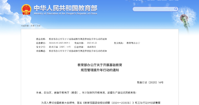 近日,教育部辦公廳印發(fā)《關(guān)于開展基礎(chǔ)教育“規(guī)范管理提升年”行動(dòng)的通知》,進(jìn)一步清理整治違背教育規(guī)律、侵害群眾利益的辦學(xué)治校行為,深化整治中小學(xué)“校園餐”、利用征訂教輔及購買校服謀利等侵害學(xué)生及家長合法權(quán)益的突出問題。