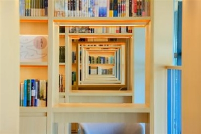 綠意盎然島嶼:在采光良好的階梯閱讀區(qū)設(shè)置了“綠蔭書苑”,利用綠植、淺木色的階梯位置,輔以柔和的自然光,營造出樹蔭下閱讀的寧靜避暑氛圍。