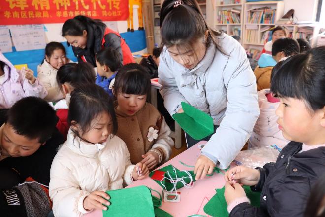 互動(dòng)環(huán)節(jié),孩子們積極踴躍朗讀雷鋒語(yǔ)錄,現(xiàn)場(chǎng)分享自己助人為樂(lè)的故事和學(xué)習(xí)感悟及對(duì)雷鋒精神的理解。手工環(huán)節(jié)制作“為人民服務(wù)”主題帆布包,小朋友們一針一線制作帆布包,一次縫不對(duì),拆掉線再來(lái)一次,遇到困難一起想辦法完成目標(biāo)?;顒?dòng)不僅提高了孩子們動(dòng)手能力,也讓雷鋒精神在孩子幼小的心靈生根發(fā)芽。