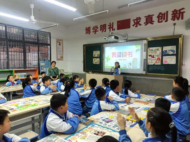 考察團首先來到雙峰城北學(xué)校,受到校長王偉華的熱情歡迎。王校長圍繞該?!鞍藗€一”的閱讀管理模式為考察團做了細(xì)致講解??疾靾F成員在認(rèn)真聽取講解的同時仔細(xì)翻閱學(xué)?;顒娱_展的圖片、文字資料,一起走進閱讀課堂、圖書閱覽室,實地觀摩師生的閱讀教學(xué)活動,親身體驗閱讀為義務(wù)教育打開的新大門。