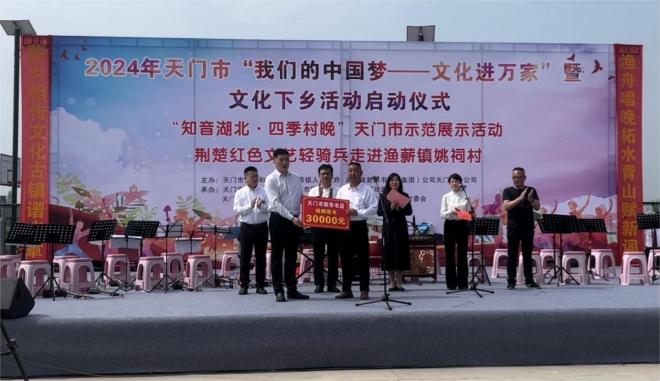 本網(wǎng)訊(通訊員倪潔銀、責(zé)任編輯葉珂)4月15日,天門市“我們的中國夢——文化進萬家”暨文化下鄉(xiāng)活動啟動儀式在天門市漁薪鎮(zhèn)姚祠村文化廣場舉行,市人民政府副市長古玉麗、市委宣傳部副部長王翠榮、市文化和旅游局局長劉志華、新華書店天門市分公司常務(wù)副經(jīng)理彭紅波及漁薪鎮(zhèn)有關(guān)領(lǐng)導(dǎo)出席活動。