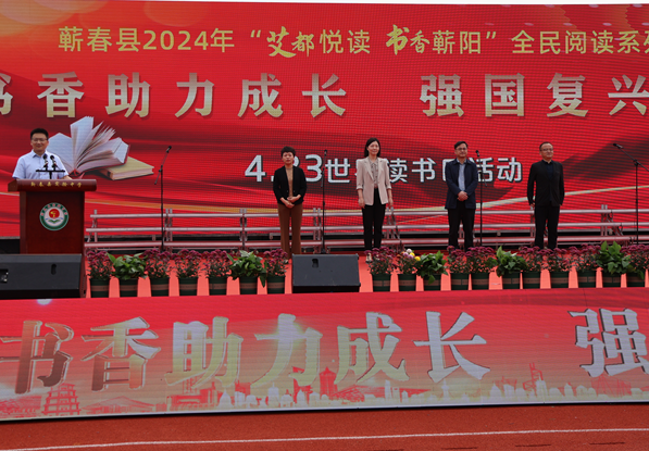 本網(wǎng)訊(通訊員何俊、責(zé)任編輯葉珂)4月22日,蘄春縣“4.23”世界讀書日“書香助力成長(zhǎng) 強(qiáng)國(guó)復(fù)興有我”主題讀書活動(dòng)暨共建“書香校園示范區(qū)”啟動(dòng)儀式在縣實(shí)驗(yàn)中學(xué)舉行。新華書店集團(tuán)副總經(jīng)理周怡,蘄春市委宣傳部副部長(zhǎng)吳敬秋、版權(quán)科副科長(zhǎng)李思銳,縣委常委、統(tǒng)戰(zhàn)部部長(zhǎng)程桂君,縣政府副縣長(zhǎng)譚皓,縣委宣傳部副部長(zhǎng)余立鵬,縣教育局副書記李泓及新華書店蘄春縣分公司經(jīng)理王新友等出席活動(dòng),縣全閱辦各成員單位負(fù)責(zé)同志及縣實(shí)驗(yàn)中學(xué)全體師生參加活動(dòng)。